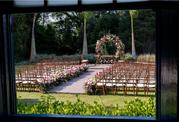 No nosso jardim à frente da Casa Sede é possível criar diversos cenários diferentes para cerimônias. Uma segunda opção, é o nosso gramado ao lado do Lago que possibilita uma experiência memorável ao lar livre.